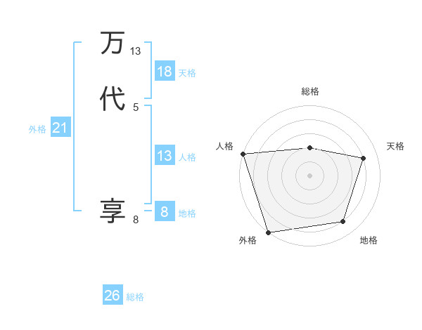 万代 享さんの外格は21画の5点!