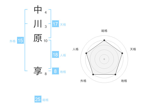 中川原 享さんの総格は25画の4点!