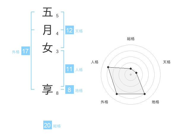 五月女 享さんの総格は20画の1点!