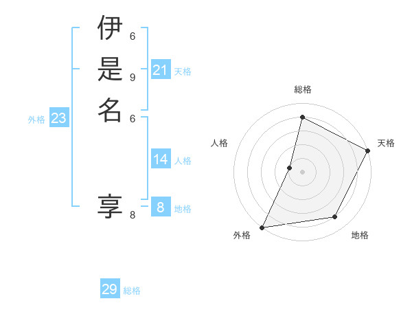 伊是名 享さんの総格は29画の4点!