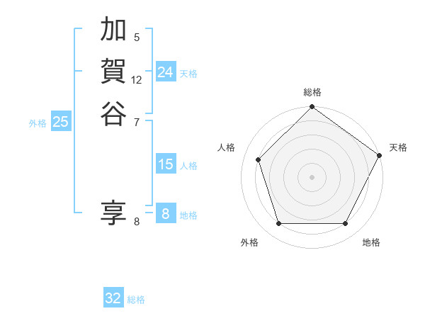 加賀谷 享さんの天格は24画の5点!