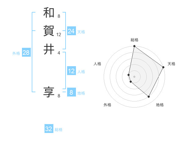 和賀井 享さんの天格は24画の5点!