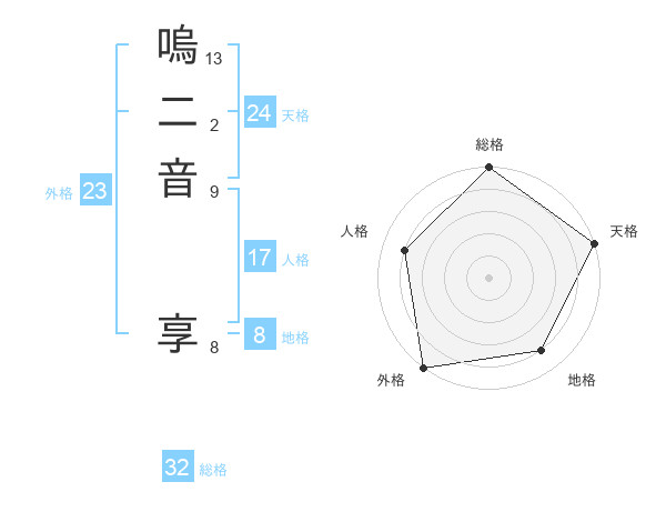 嗚二音 享さんの外格は23画の5点!