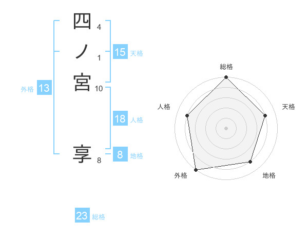 四ノ宮 享さんの外格は13画の5点!