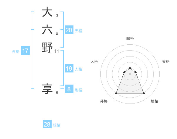 大六野 享さんの名前の鑑定結果は!