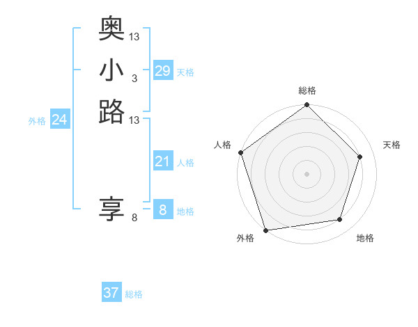 奥小路 享さんの天格は29画の4点!