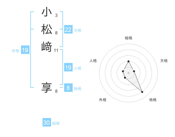 小松﨑 享さんの総格は30画の2点!