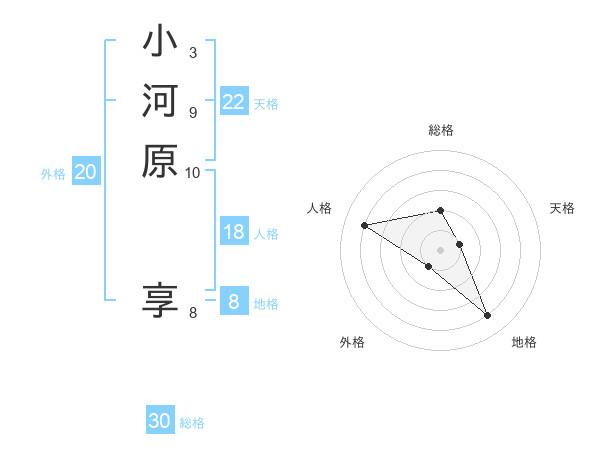 小河原 享さんの天格は22画の1点!