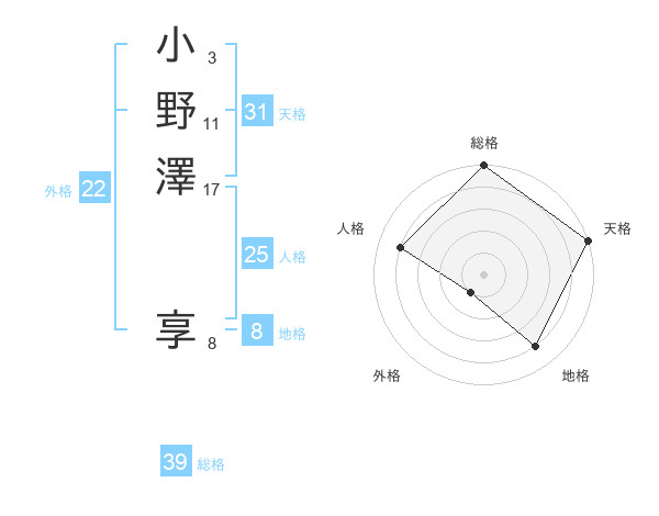 小野澤 享さんの総格は39画の5点!