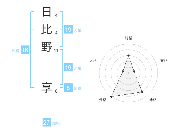 日比野 享さんの総格は27画の3点!
