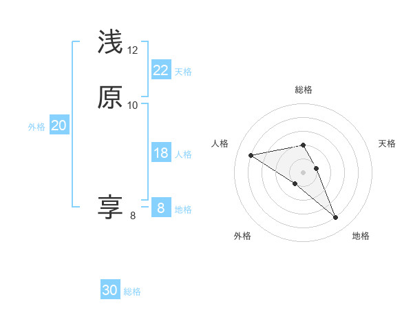 浅原 享さんの総格は30画の2点!
