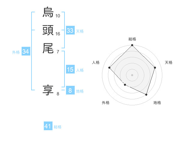 烏頭尾 享さんの外格は34画の2点!