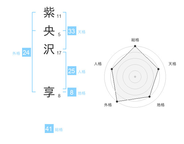 紫央沢 享さんの総格は41画の5点!