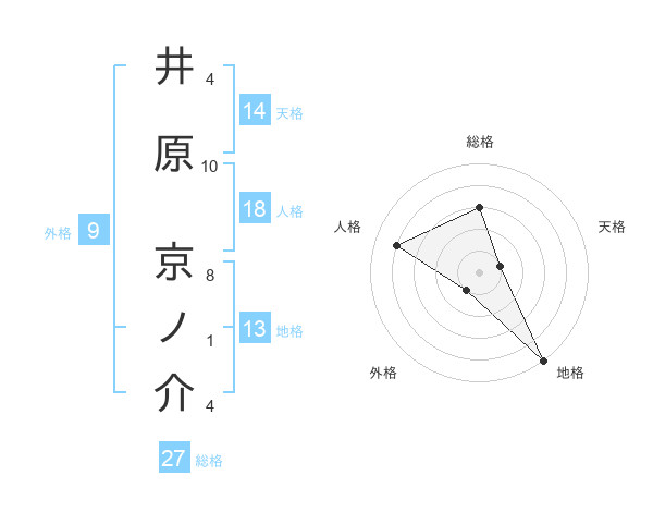 井原 京ノ介さんを姓名の画数から五運を鑑定