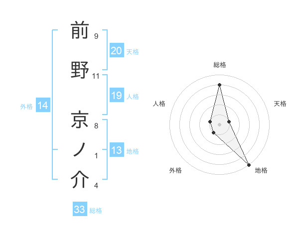 前野 京ノ介さんを姓名の画数から五運を鑑定
