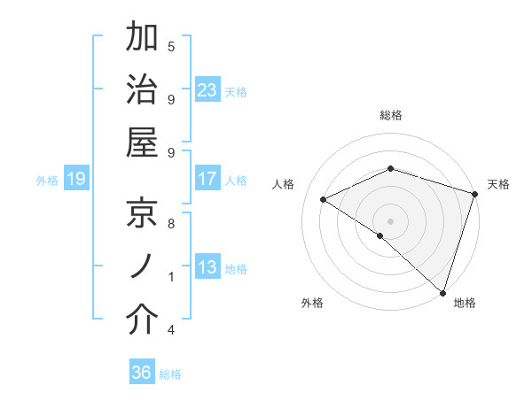 加治屋 京ノ介さんを姓名の画数から五運を鑑定