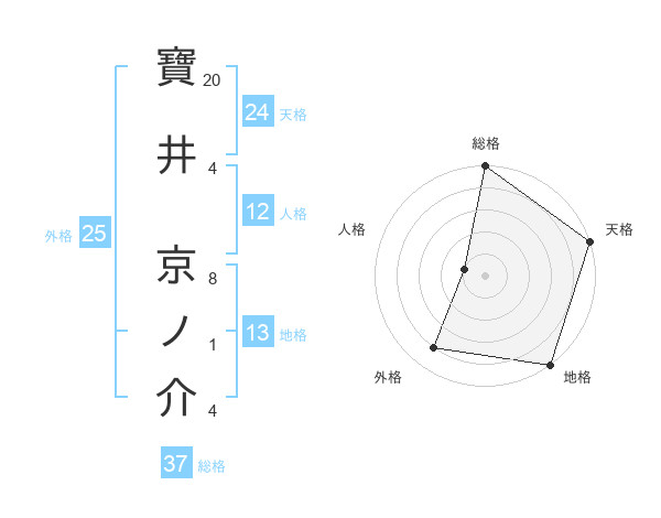 寶井 京ノ介さんを姓名の画数から五運を鑑定