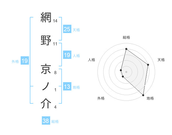 網野 京ノ介さんの総格は38画の4点!