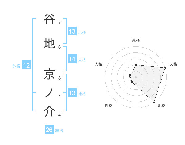 谷地 京ノ介さんを姓名の画数から五運を鑑定