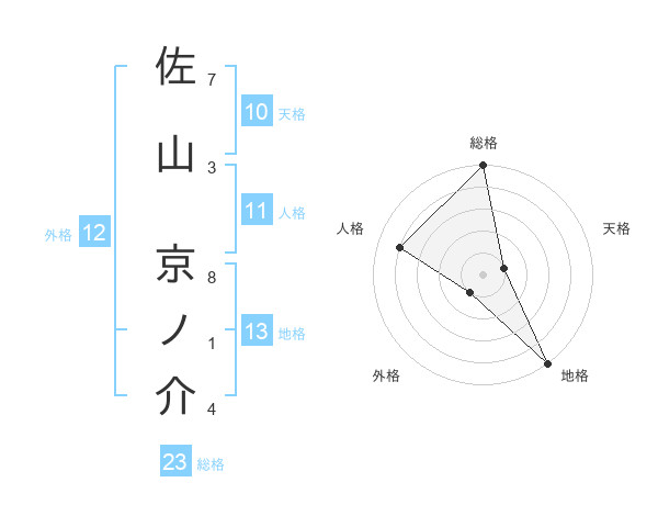 佐山 京ノ介さんを姓名の画数から五運を鑑定