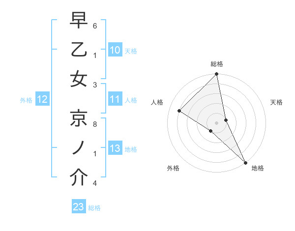 早乙女 京ノ介さんを姓名の画数から五運を鑑定