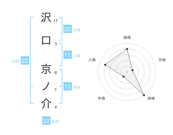 沢口 京ノ介さんを姓名の画数から五運を鑑定