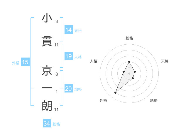 小貫 京一朗さんを姓名の画数から五運を鑑定