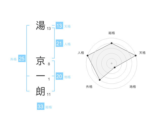 湯 京一朗さんの天格は13画の5点!