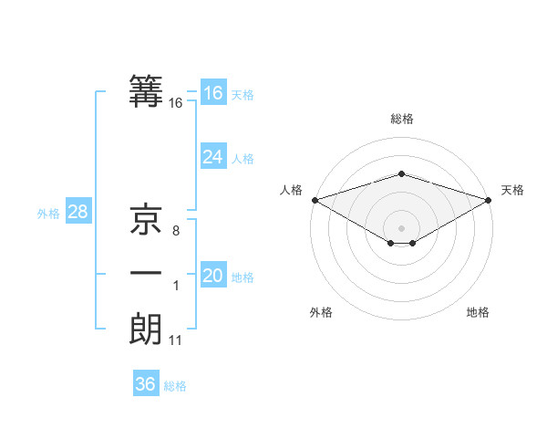 篝 京一朗さんの総格は36画の3点!