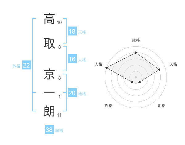 高取 京一朗さんの総格は38画の4点!