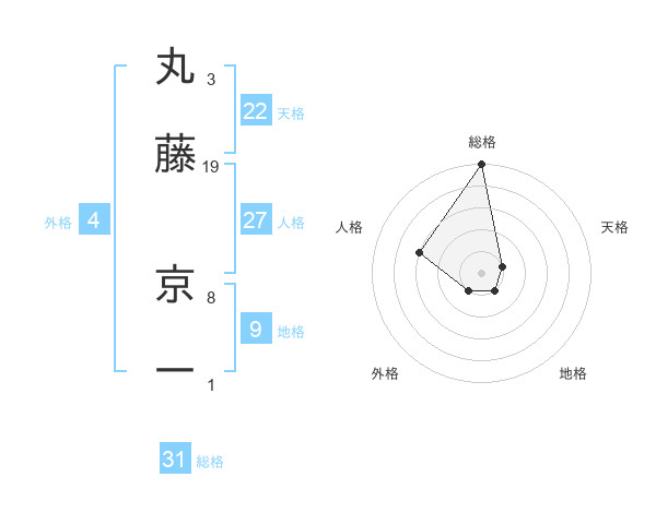 丸藤 京一さんを姓名の画数から五運を鑑定
