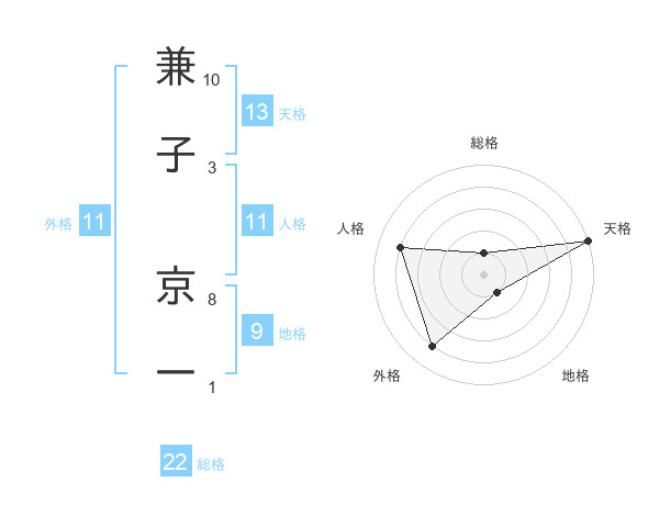 兼子 京一さんの総格は22画の1点!