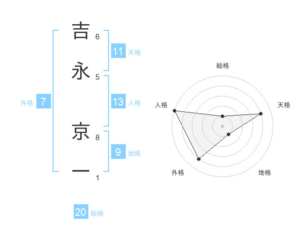 吉永 京一さんの天格は11画の4点!