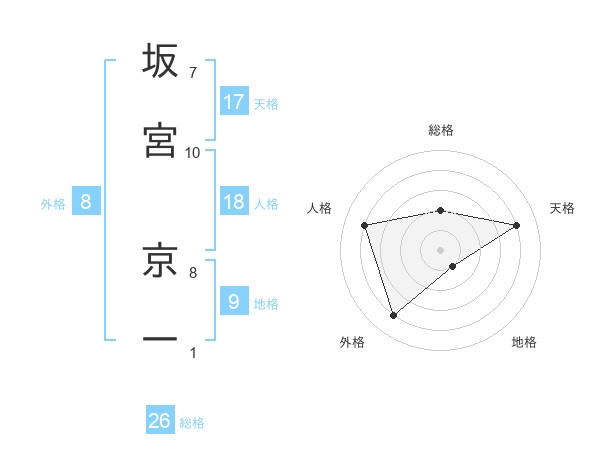 坂宮 京一さんを姓名の画数から五運を鑑定