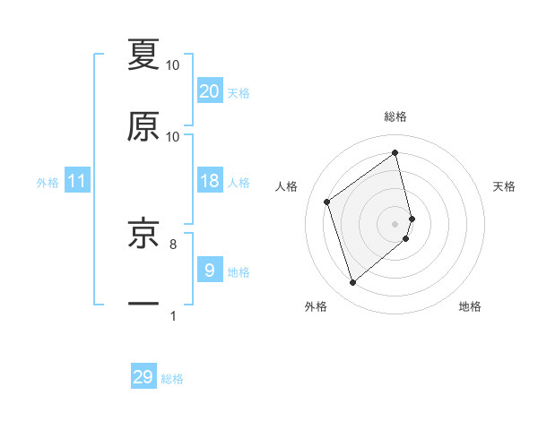 夏原 京一さんの総格は29画の4点!