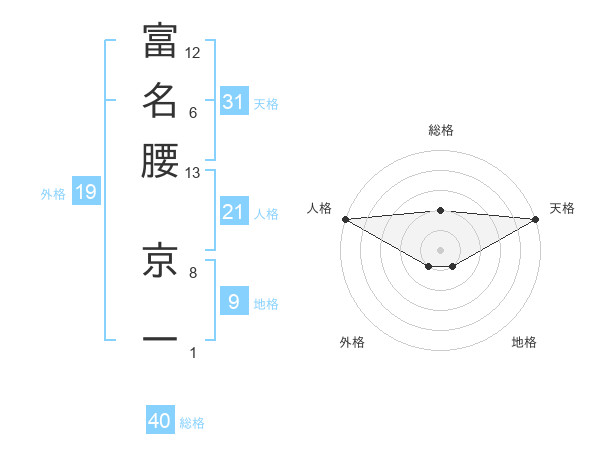 富名腰 京一さんを姓名の画数から五運を鑑定