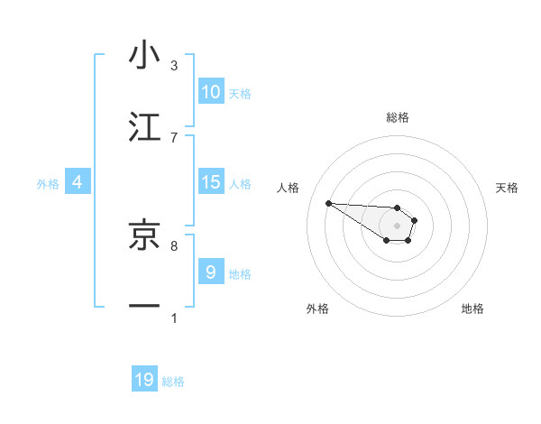 小江 京一さんの総格は19画の1点!