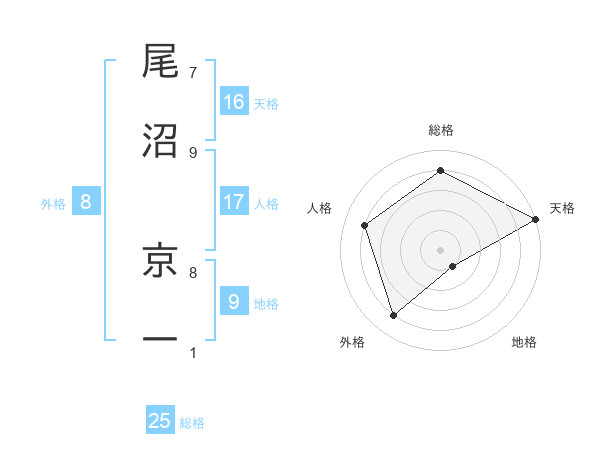 尾沼 京一さんの総格は25画の4点!