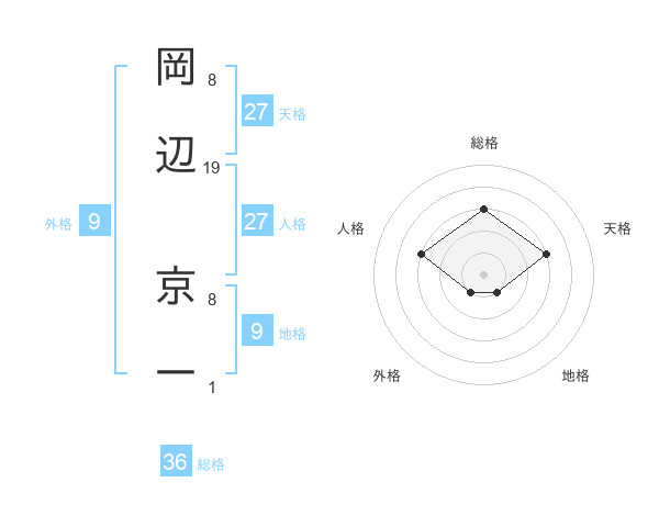 岡辺 京一さんの総格は36画の3点!