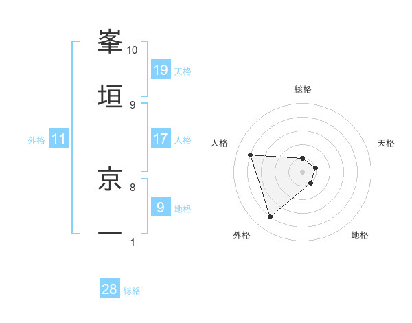 峯垣 京一さんの外格は11画の4点!