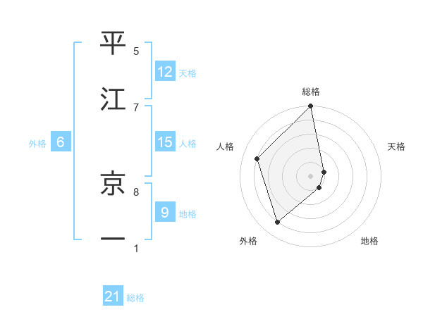 平江 京一さんの総格は21画の5点!