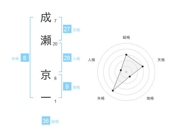 成瀬 京一さんを姓名の画数から五運を鑑定