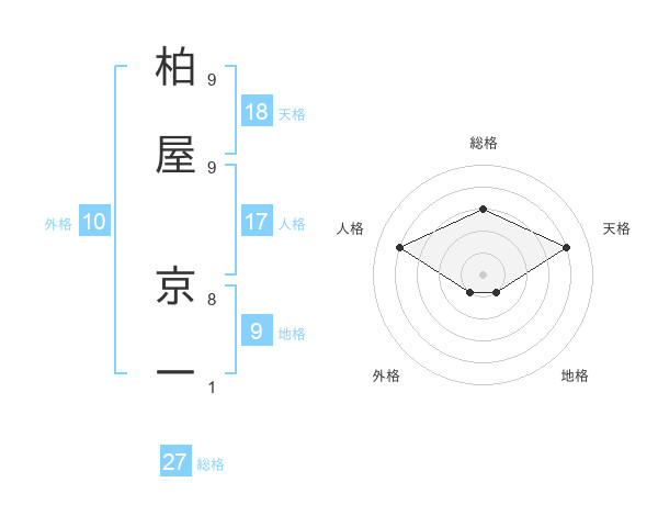 柏屋 京一さんの総格は27画の3点!
