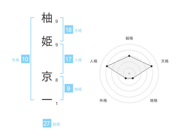 柚姫 京一さんの総格は27画の3点!