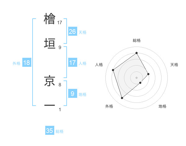 檜垣 京一さんの総格は35画の4点!