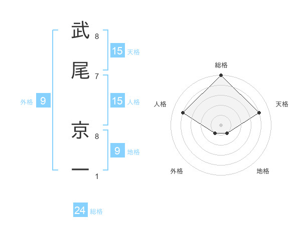武尾 京一さんの総格は24画の5点!