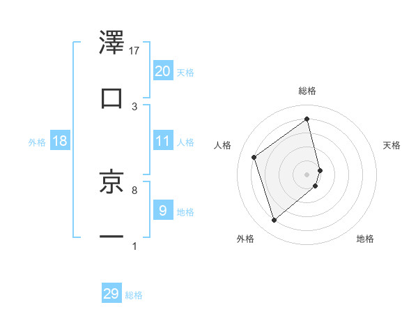 澤口 京一さんの総格は29画の4点!