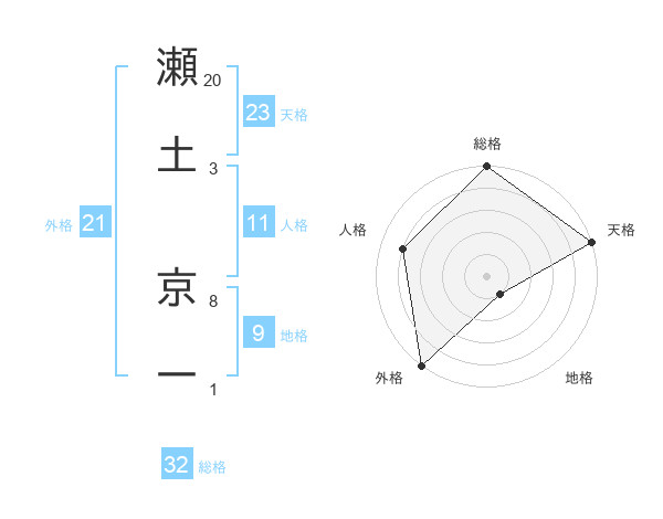 瀬土 京一さんを姓名の画数から五運を鑑定