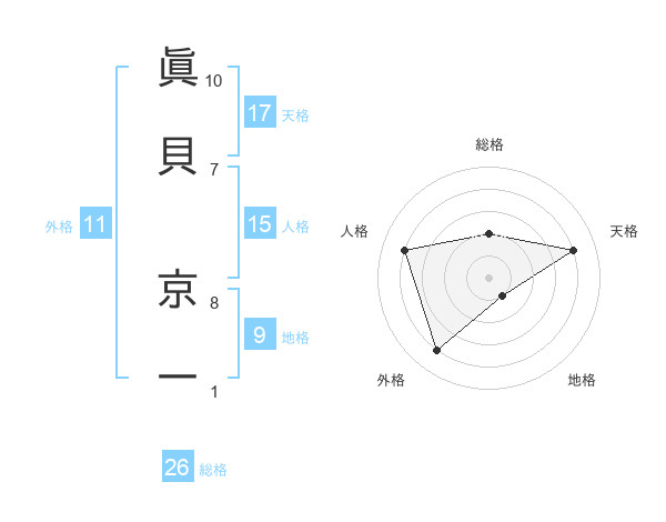 眞貝 京一さんの天格は17画の4点!