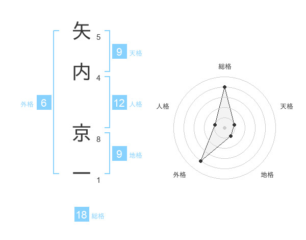 矢内 京一さんの総格は18画の4点!